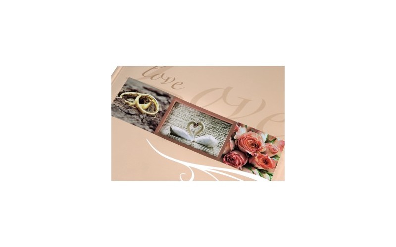 - dosky z polaminovaného papiera so svadobným motívom- na 300 fotografií formátu 10x15- čierne vnútorné listy, pergamenové medzistránky- formát albumu: 29 x 32 cm- počet strán: 60- balenie: 12ks